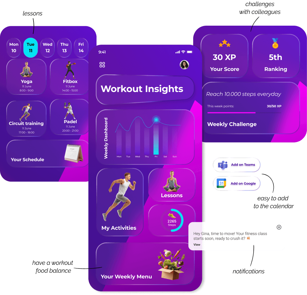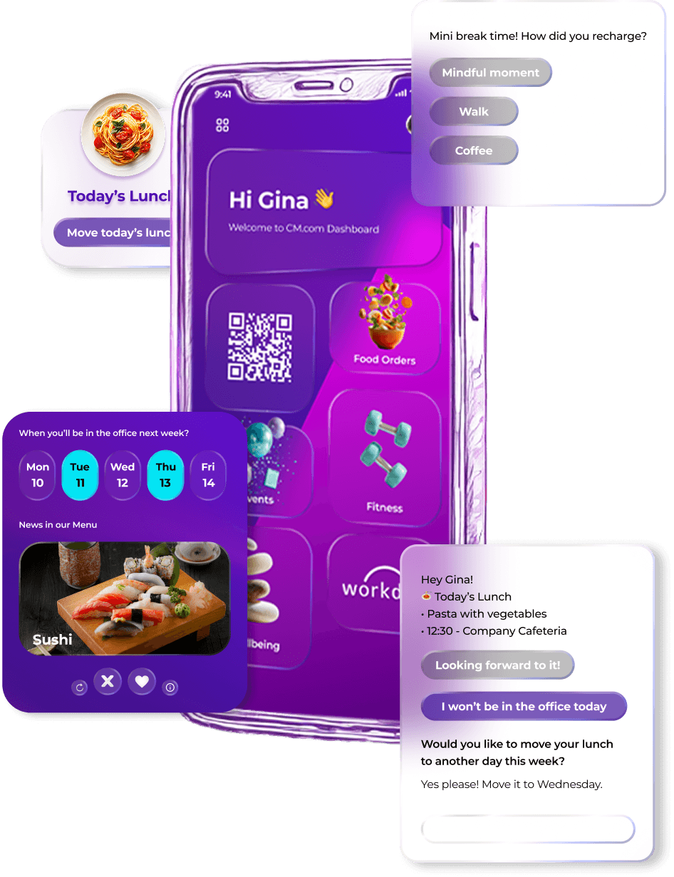 The digital business card becomes a personal dashboard a place where employees can see their daily highlights, stay motivated, and take care of themselves.