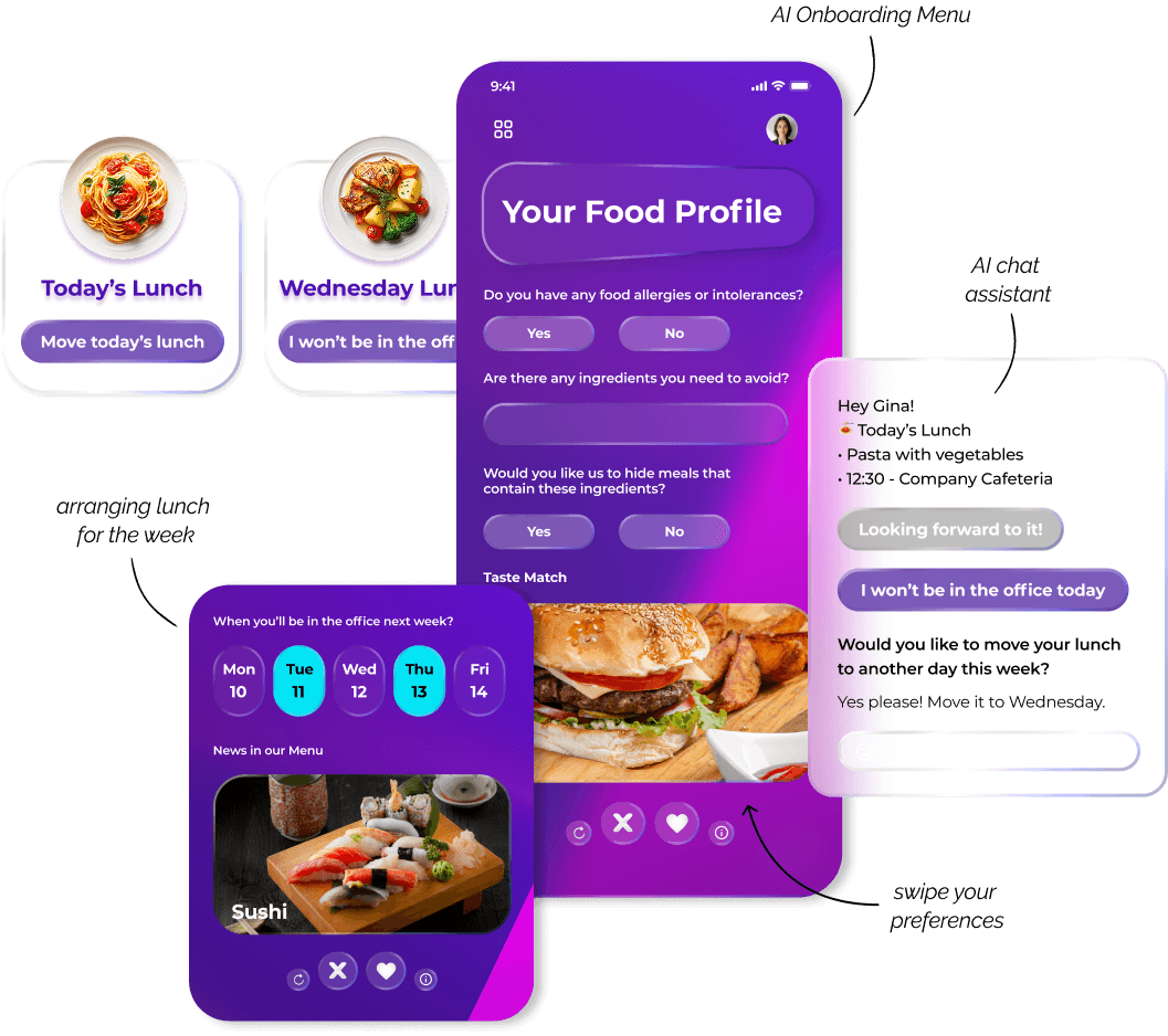 AI-powered meal suggestions based on personal preferences, allergies, and office days.