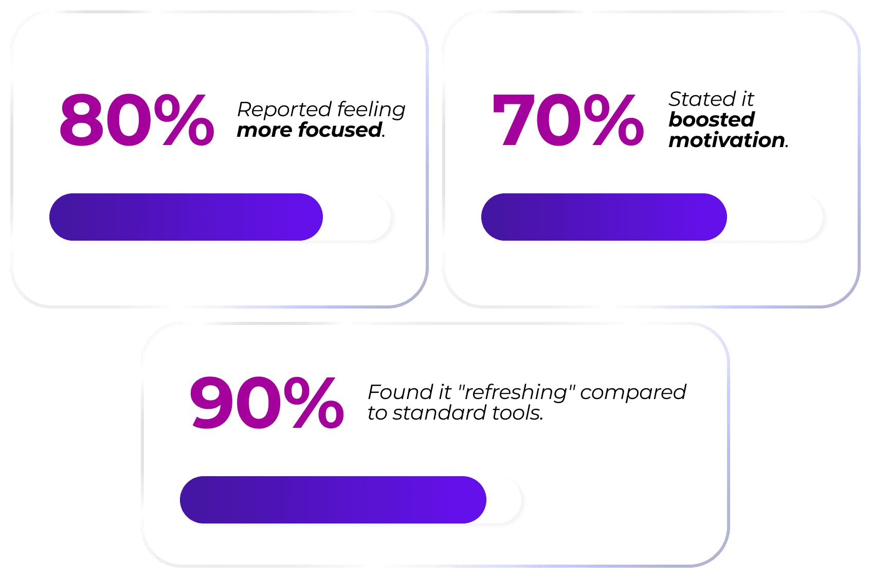 User interviews highlighted significant improvements in focus, motivation, and overall satisfaction compared to standard tools.