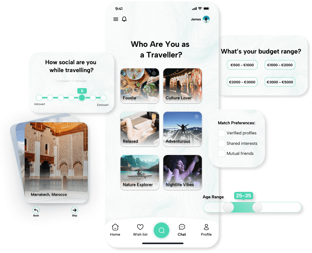 A social travel app that helps solo travellers find compatible travel buddies and supports groups in planning trips together effortlessly, safely, and guided by AI.