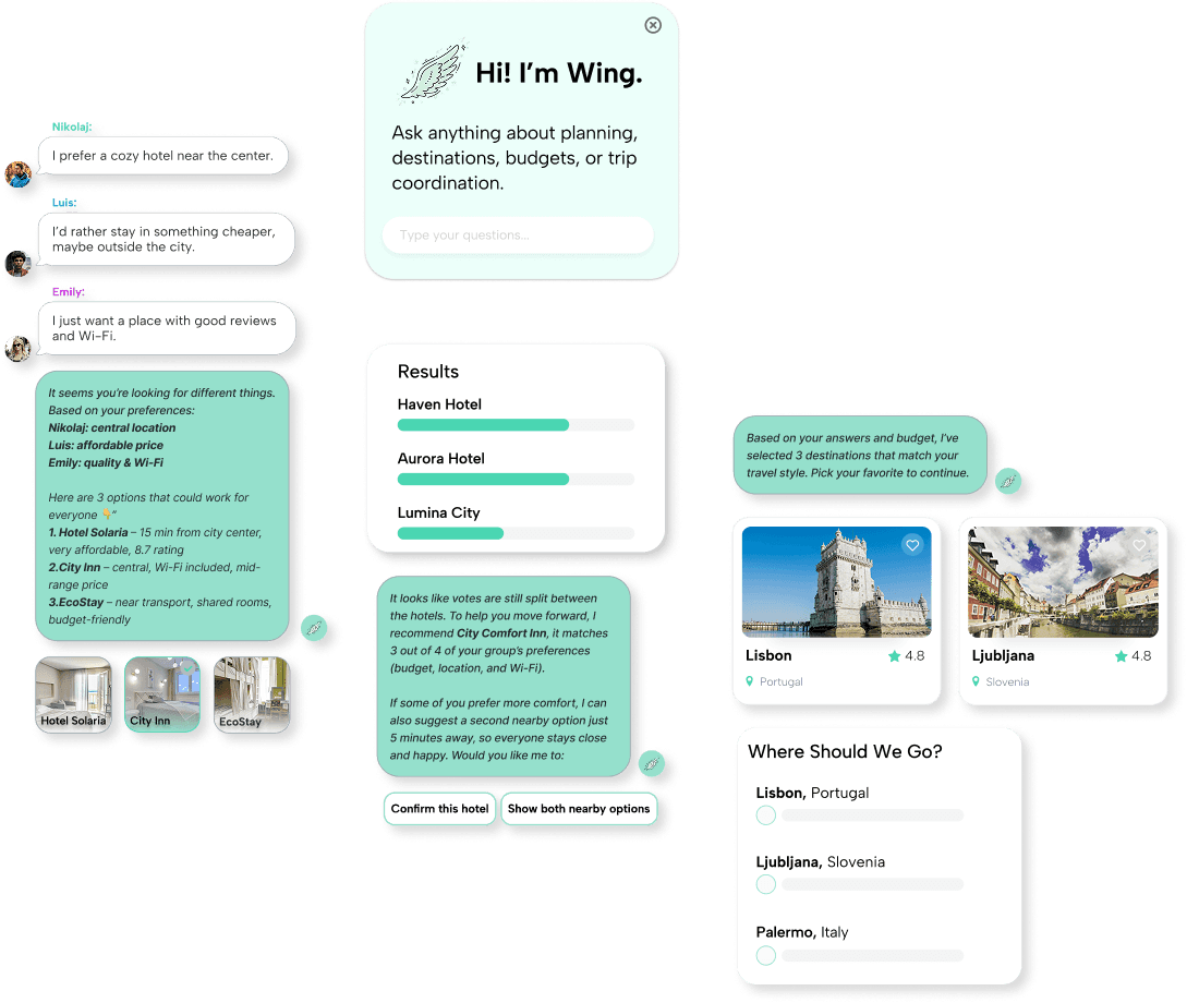 The project demonstrates how AI can streamline group-travel planning by aligning different traveler profiles, budgets, and preferences into clear, actionable trip options making it easier and faster for groups to decide and move forward.