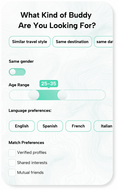 A dedicated feature for solo travellers to connect with trustworthy, compatible travel companions based on destination and travel style.