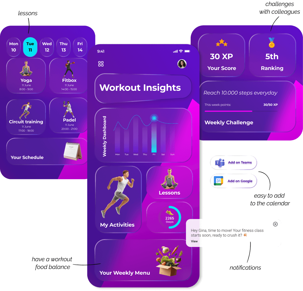 The digital business card becomes a personal dashboard a place where employees can see their daily highlights, stay motivated, and take care of themselves.